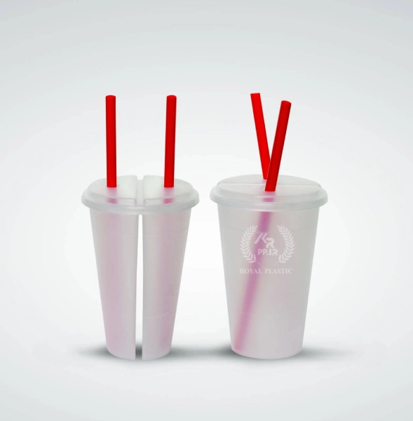 لیوان تو ایکس با درب و نی و بدون درب، از جمله محصولات تولیدی کارخانه رویال پلاستیک میباشد، که در سایز 250 cc، با ارتفاع 14.3 cm و با قطر دهانه 90 mm تولید میشود. این لیوان درب دار پلاستیکی از جنس متریال پلی پروپیلن (PP) و با گرید غذایی (Food grade)و رنگ مات تولید میشود.